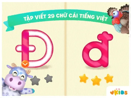 - 29 bài học chữ cái tiếng Việt được minh họa dưới dạng các sinh vật vô cùng vui nhộn và đáng yêu