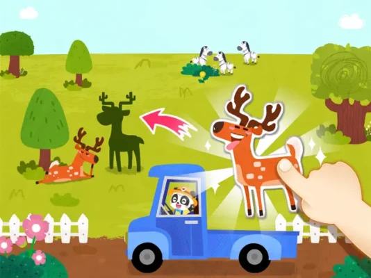 Before you go, pick up a cool truck. Do you like red, yellow or blue one? It’s up to you! Drive the truck and set out to search for little animals!