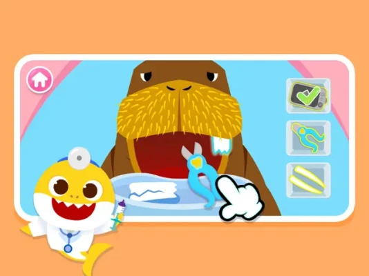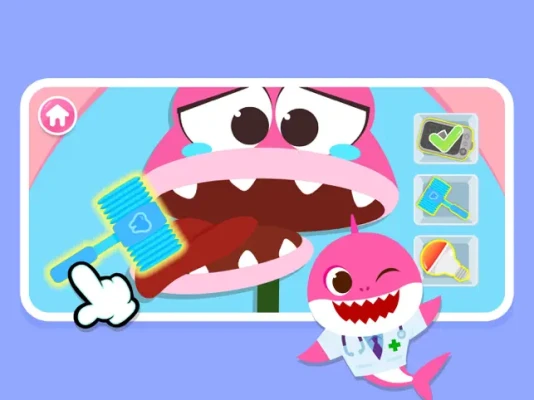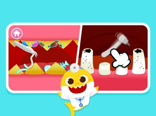 Become the dentist with Baby Shark and treat all kinds of animal patients! With 12 fun treatment games, you will learn a lot about being a dentist! With Baby Shark by your side, dental visits will feel like a breeze!