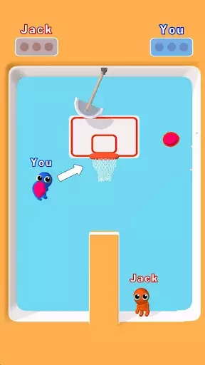 Take it from above the basket and throw into the basket. Hit the opponent to stop him/her throwing the ball into the basket. Enjoy!
