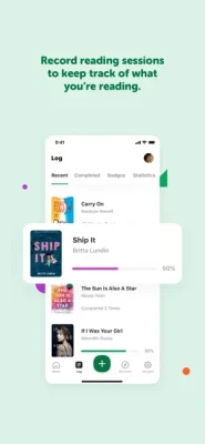 - Record reading sessions with a reading timer or log an entire book with a click.
