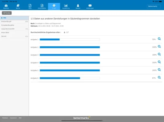 For teachers: Use the bettermarks app to log in to the teacher portal. Browse the library with over 100,000 exercises, assign content and evaluate students' results. A license is required to use the app.