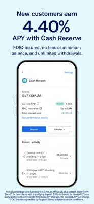New customers can earn 4.40% APY* with Cash Reserve. Terms apply.