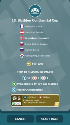Biathlon Manager 2023 lets you guide a biathlete on a road to World Cups and Winter games (Beijing 2022). You will manage many tactical and strategic sport aspects such as hiring support biathlon team members, selecting proper equipment, training, and participating in various tournaments, championships and challenges!