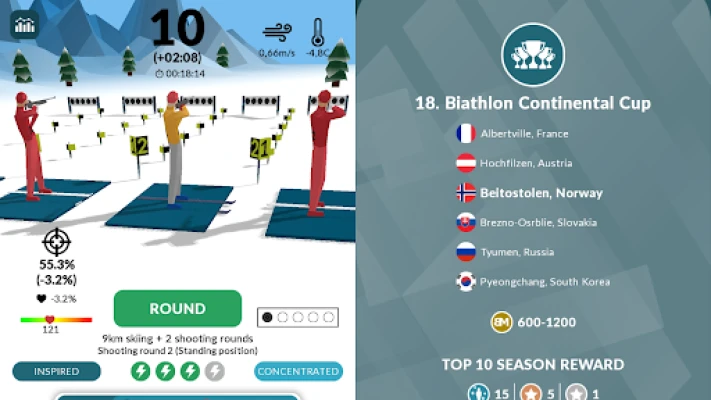 - 4 Biathlon challenges: Prove shooting skills in Shooting Challenge, compete against time in Sprint and Individual Challenges as well as against the most famous biathletes in Legendary Challenge
