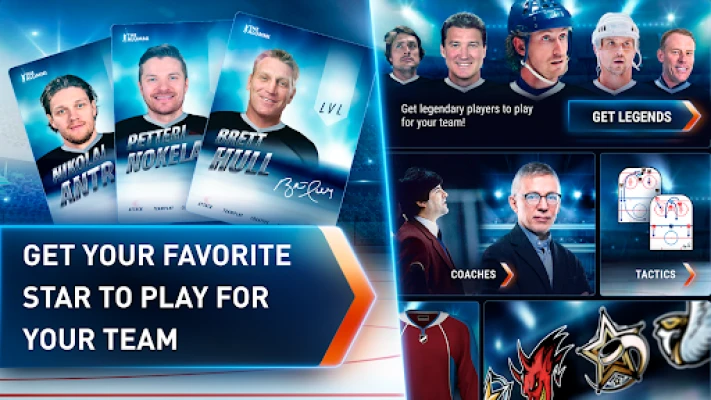 Find, sign and train the best players to bring success to your club! Add real NHL and KHL players to your team, hire legendary hockey coaches.