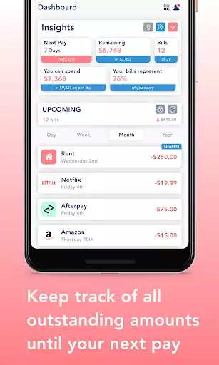 Have common bills with your flatmates or family? Create a shared bill so everyone is notified on time. Amounts can be personalised as well.