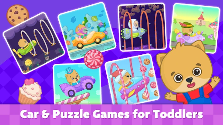 Car games for kids by Bimi Boo is a blend of learning puzzles and thrilling racing. Toddlers will be able to choose one of 36 amazing vehicles to drive in various locations. Girls and boys will encounter different tasks to solve on their way. There are 144 puzzles for kids ages 2 to 5 in this toddler game.