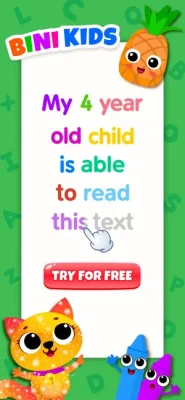 Bini Kids is a full set of educational games for preschool. It covers 18 essential topics from Reading & Math to Drawing & Creativity. Learning path adapts to your kid.
