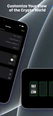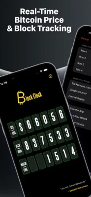 * Customizable Experience: Tailor the iBlockClock to your mood or preference. Choose your background color and adjust the animation speed for how quickly values update. Whether in portrait or landscape mode, your Bitcoin clock is just as versatile as it is informative.