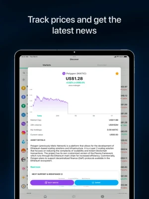 Buy, sell, swap, hold and manage MATIC, the native token of the Polygon blockchain. You can also manage tokens and use DApps on the Polygon network.