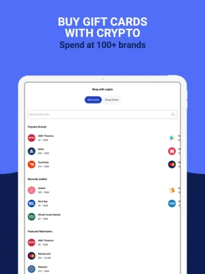 - Use your crypto balance to buy and send gift cards easily