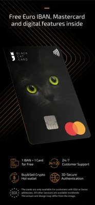 Blackcatcard is a mobile application that offers a European Mastercard thoroughly designed for online and offline purchases and accepted worldwide.