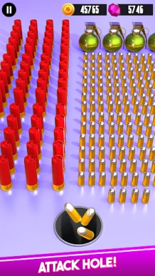 Attack Hole Game features multiple levels, each with increasing bullet stacks and bigger weapons so that the players progress through the levels by collecting bullets and beat the big boss at the end of each level of time hole.