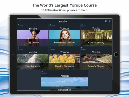 Bluebird brings language learning to the world’s population in an unprecedented way. You can learn Yoruba from any of 146 narration languages.