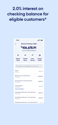 *Customers will earn 2.0% interest on total balances up to and including $250,000 only if they meet the monthly debit transaction or deposit requirements described in section M of the Account Agreement (https://www.bluevine.com/ccbx-checking-agreement/). No interest earned on balances over $250,000. Any interest accrued and payable for an Account or Sub-Account will be paid to your main Account.