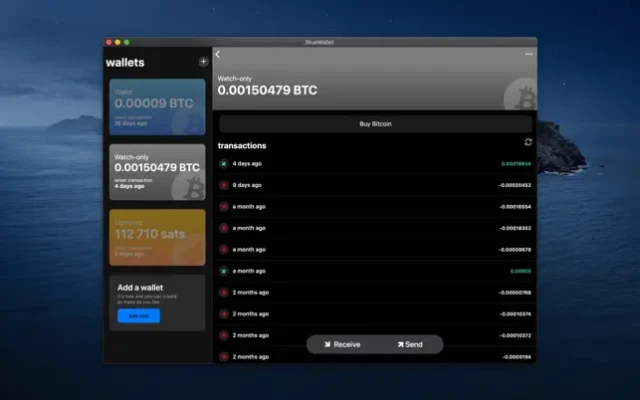 A Bitcoin wallet that allows you to store, send Bitcoin, receive Bitcoin and buy Bitcoin with focus on security and simplicity.