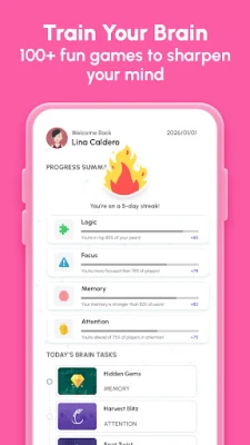 Explore cognitive workouts specifically designed to target memory, attention, problem-solving, and mental agility. Our quick sessions fit seamlessly into any schedule, making daily training easy, effective, and fun. Looking for a way to unwind? Try our relaxing mind games to reduce stress and restore mental clarity.