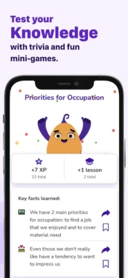 3. Play fun mini games to test you on the facts you’ve just learned. Engaging with content lets you easily memorize newly acquired knowledge.