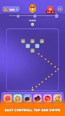 - Variety in bricks and balls: In addition to standard square blocks, you will find triangled ones, which make a ball change its flying route significantly, and transparent items, which let the ball pass through. And, yes, you can change and empower your swipe brick breaker by applying special power-ups.