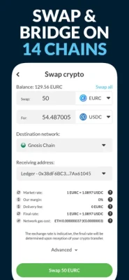 Manage your funds on Bitcoin, Lightning, Ethereum, Arbitrum, Avalanche, Base, BNB Chain, Celo, Gnosis Chain, Optimism, Polygon, Rootstock, Tezos and zkSync Era, and explore these ecosystems through a simple interface.
