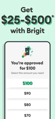 Not all users will qualify. Subject to eligibility and Brigit’s approval and policies, advances range from $25 - $500. ME: $25-$250 only. Not available in all states. Express (instant) transfer fee may apply for debit card disbursals. Advances have no mandatory min or max repayment period. Money advanced has 0% max interest. Example $100 cash advance: Sent via ACH & paid back on the date you set with 0% interest, $0 origination fees, $0 processing fees, $0 transfer fees related to the money advance. Total Cost: $100