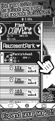 Tap coins to “poke for profit”or upgrade the various facilities in each unique area for automatic income.