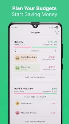 Create monthly, annual or custom budgets for different periods to better plan and track your spending.