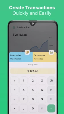 Quickly record transactions on the go with custom categories, wallets, notes, and dates.