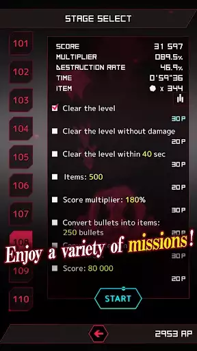 Various missions await you in each stage -- from simple to challenging ones. Clearing missions like “Defeat 30 enemies!” unlocks a boss stage. Defeat the boss to proceed to the next chapter.