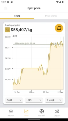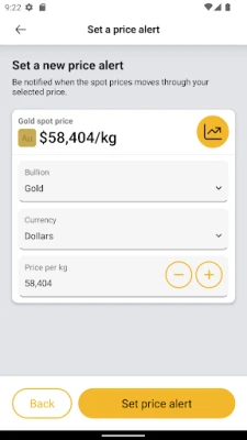 + Set up personalised alerts to let you know when the spot price of gold, silver, platinum or palladium reaches a value you choose.