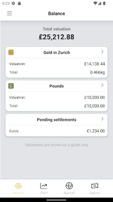 + Check your bullion and currency balances, and current valuation.