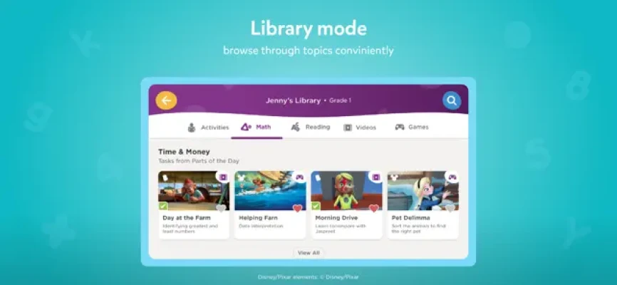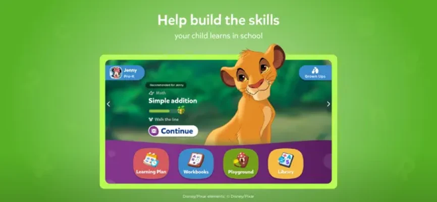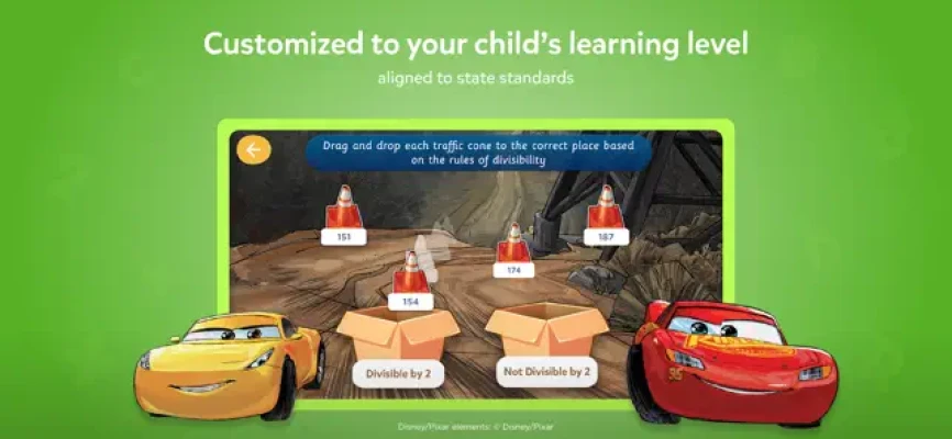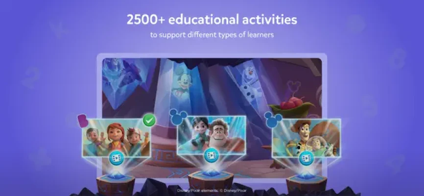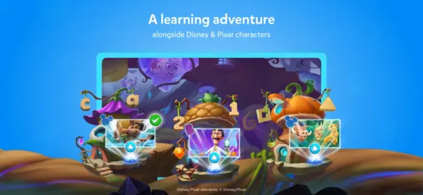- A guided learning adventure featuring iconic Disney and Pixar characters like Buzz Lightyear, Elsa, Lightning McQueen, and more