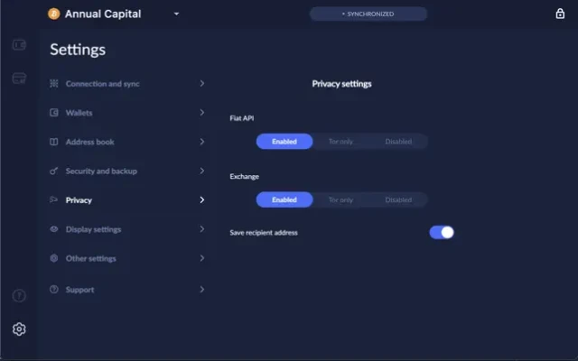 -Advanced privacy settings for complete control. For example, you can set the fiat API to Tor-only, or disable it completely