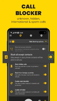 - Enable whitelist to avoid blocking your favorite contacts/numbers