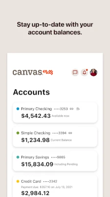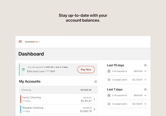 The Canvas app lets you bank on the go so you can stay focused on the moment. Easily check account balances, deposit checks, track spending, apply for loans, and so much more. With the Canvas app, the banking tools you need to afford life are in the palm of your hand.