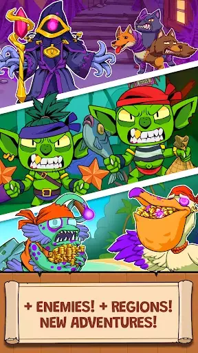 In each part of the kingdom, you'll encounter unique species under Chaos Magic's control. Defeat them to acquire essential RPG collectible cards for your deck and discover the best equipment for roguelike cards battles.