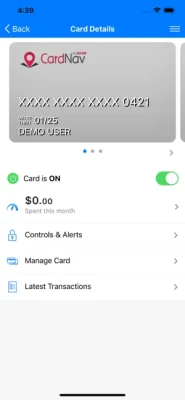 CardControl helps you protect your debit and credit cards by sending you transaction alerts and giving you the ability to define when, where and how your cards are used. Simply download the CardControl app to your smartphone, then customize your alert preferences and usage settings to monitor and manage your cards