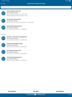 Candidates, use your CF+ app before in-person, online, or hybrid career fairs to: