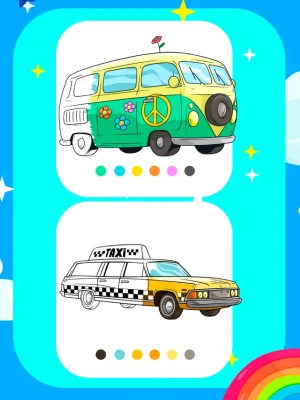 Discover the amazing world of the cars and the other vehicles. Color the best drawings of your favorite vehicles. An addictive game for all!