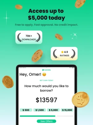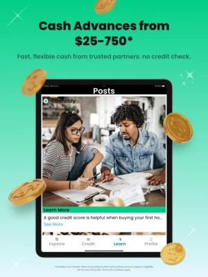 Cashably is also not affiliated with other loan apps, money apps, or cash advance platforms such as Vola Finance, Empower: Cash Advance & Credit, MoneyLion: Banking & Rewards, Rain Instant Pay, Dave: Fast Cash & Banking, Cleo: Cash Advance & Credit, Credit Genie, Albert: Budgeting & Banking, Clair, Possible: Fast Cash & Credit, ImmediatePay, FloatMe: Fast Cash Advance, Grid Money, Oasis: Cash Advance, EarnIn: Make Every Day Payday, B9: Cash Advance, Lenme: Investing & Borrowing, Brigit, Chime, Even, Cash App, Klover, Earnin, dave, floatme, Current, Cleo, SoFi Money, Varo Advance, Eureka, Afterpay, ibotta, PayActiv, MoneyKey, LendingTree, Swagbucks, Kashkick, Branch, or Upstart.