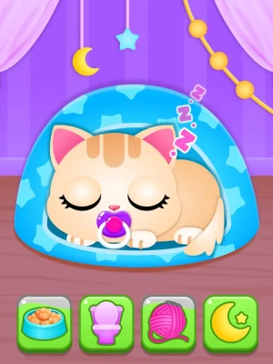 In this mini-game, your little one will choose a comfortable bed for the cat, feed it a tasty milk bottle and give it a warm hat. Create a cozy atmosphere for your pet and make sure it gets a good night's sleep!