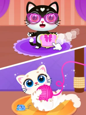 Don't miss the chance to dive into the world of tenderness and fun — put the kittens to bed, feed them delicious food, take care of their hygiene, treat their wounds and choose beautiful and colorful outfits for them. While playing, children will develop responsibility and understanding about how pets should be cared for.