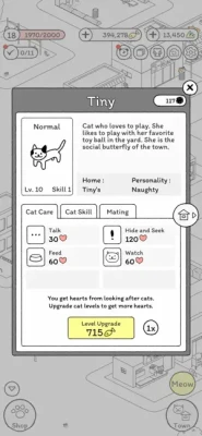 Game Features: • Relaxation with a variety of cats • Building and decorating your own village • Increase affection through mini-games with cats • Rewards for completing daily missions and achievements • Fun hidden missions and new animal friends • Cat mating and the birth of kittens