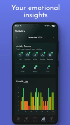 Mood & anxiety tracking — Daily check-ins, triggers, simple Mood Tracker charts. See which habits actually reduce stress and bring Relief.