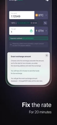 No registration is required to start exchanging crypto on ChangeNOW. We don’t collect any of your data to ensure it's 100% safe. For more security, use two-factor authentication, a 6-character pin, or authentication via face id or touch id. You can also set the screen lock time: immediately, 1 or 5 minutes, 1 or 5 hours.
