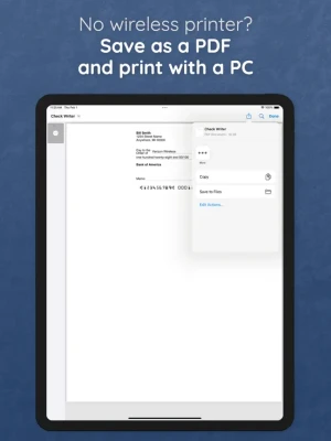 • Use your phone to print with a wireless printer. Or, create a check in the app, save it as a PDF file and send it to your computer for printing