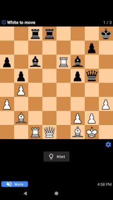 With this app, you can • Set an Alarm that allows you to solve chess puzzles in order to dismiss the alarm which can help you to maintain a daily practice • Practice chess puzzles according to your level • Awesome chess puzzles/tactics • Bookmark puzzles • Participate in daily puzzles tournament