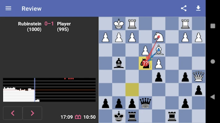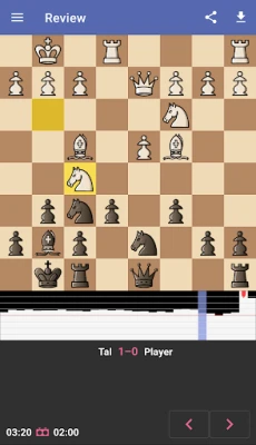 ● Review your game or share it with other chess apps (for example PGN Master) for further analysis.