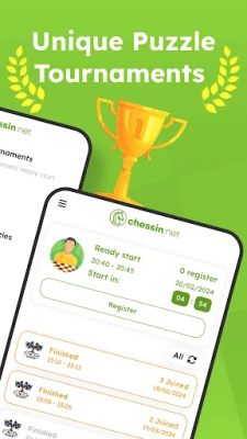 - Every 10 minutes: 5 minute-long real-time puzzle tournaments with 12 chess puzzles for everyone from beginner chess players to grandmasters